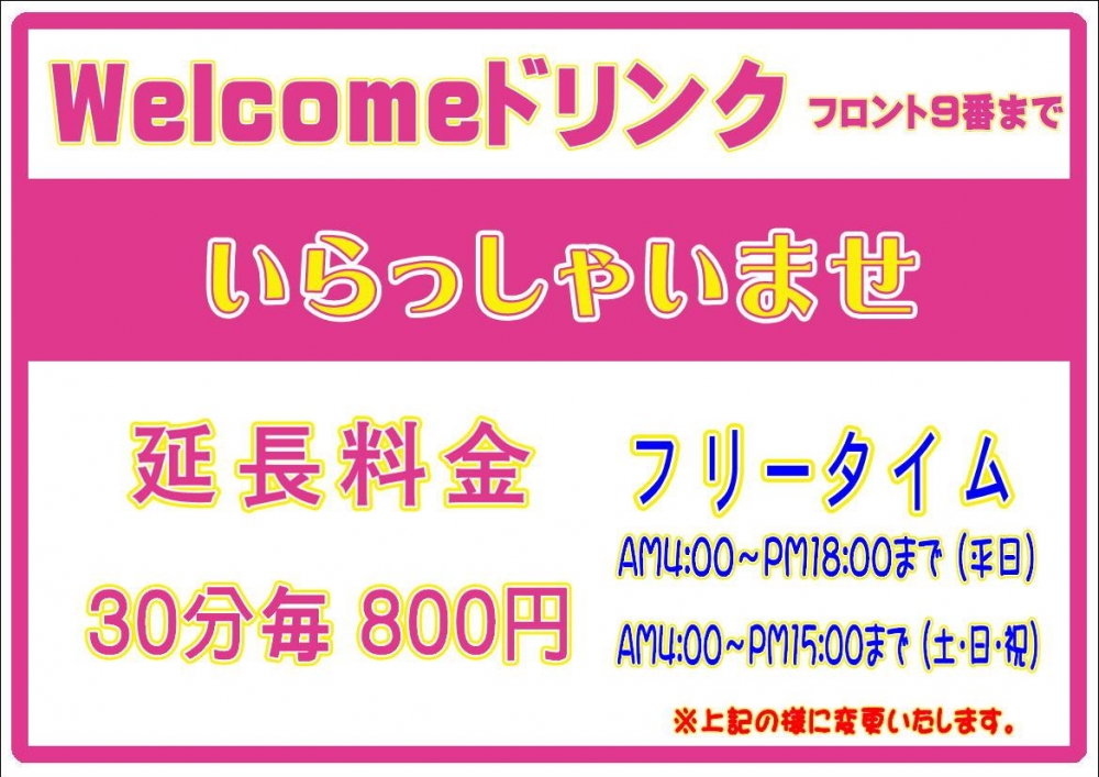 | 延長 | 【全日】30分毎 800円 |