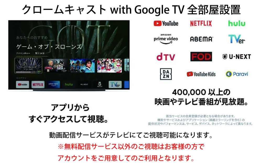 広々としたお部屋に大型TV! 更にはガラス張り...