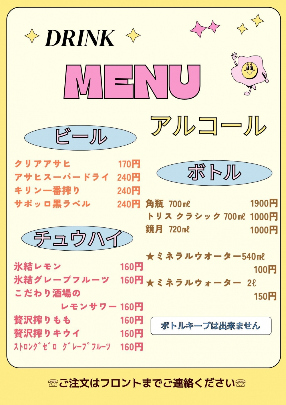 ・入店時は3時間料金となります。 その後、お時間が経過する毎に プランが自動で変更されます。 |
